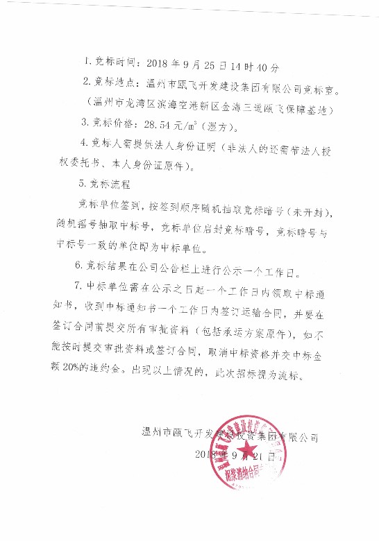 关于温州市瓯海瞿溪河头村经济合作社三产返回安置房工程建设项目泥浆运输项目的竞标公告
