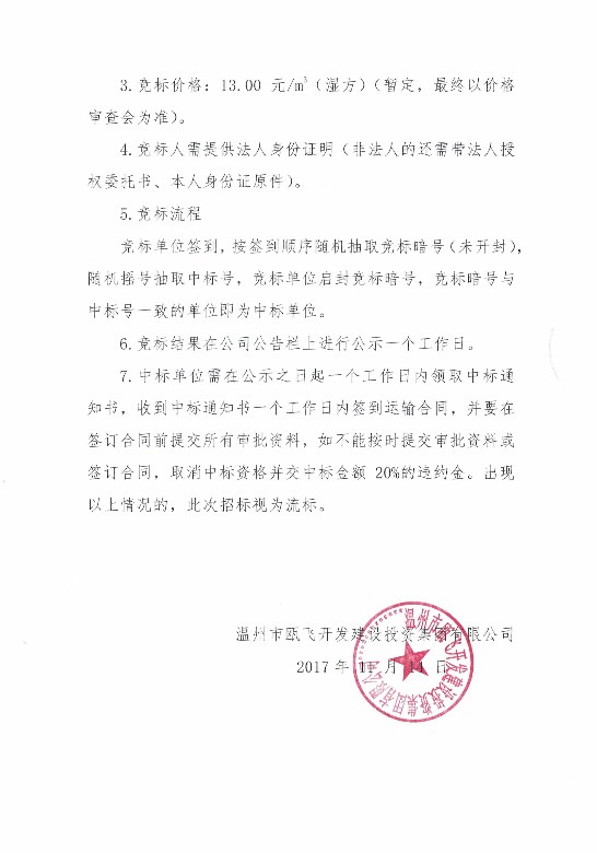 关于瓯海中心区南单元商务一期道路网工程一标段泥浆运输项目的竞标公告