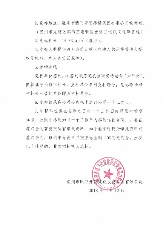 关于温州中央绿轴G22地块泥浆运输项目的竞标公告