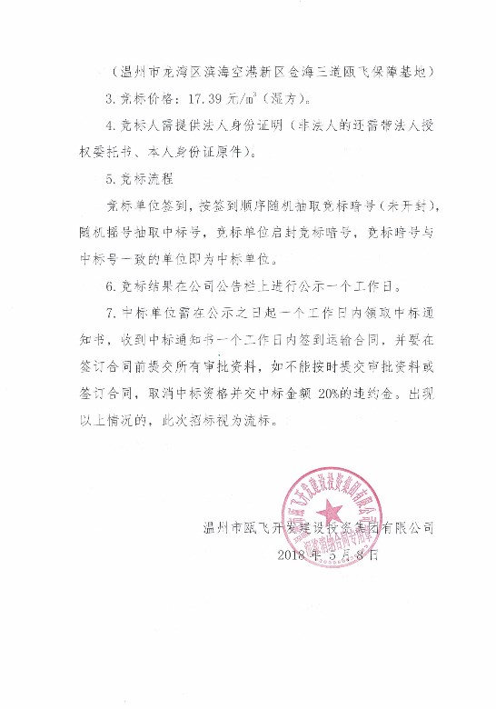 关于双屿街道垟田村D-01,D-02地块安置房工程泥浆运输项目的竞标公告