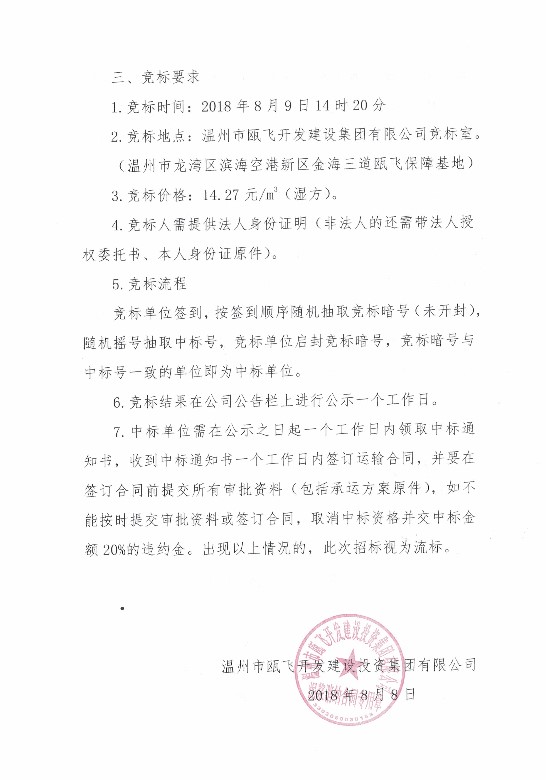 关于温州耐和实业有限公司扩建厂房工程泥浆运输项目的竞标公告