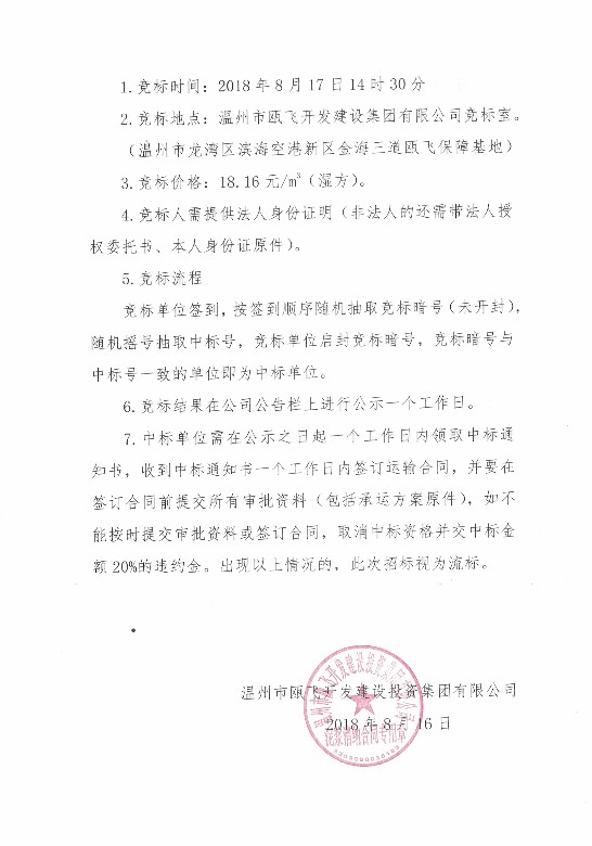 关于瓯海区经济开发区仙岩工业基地D2-2-4地块泥浆运输项目的竞标公告
